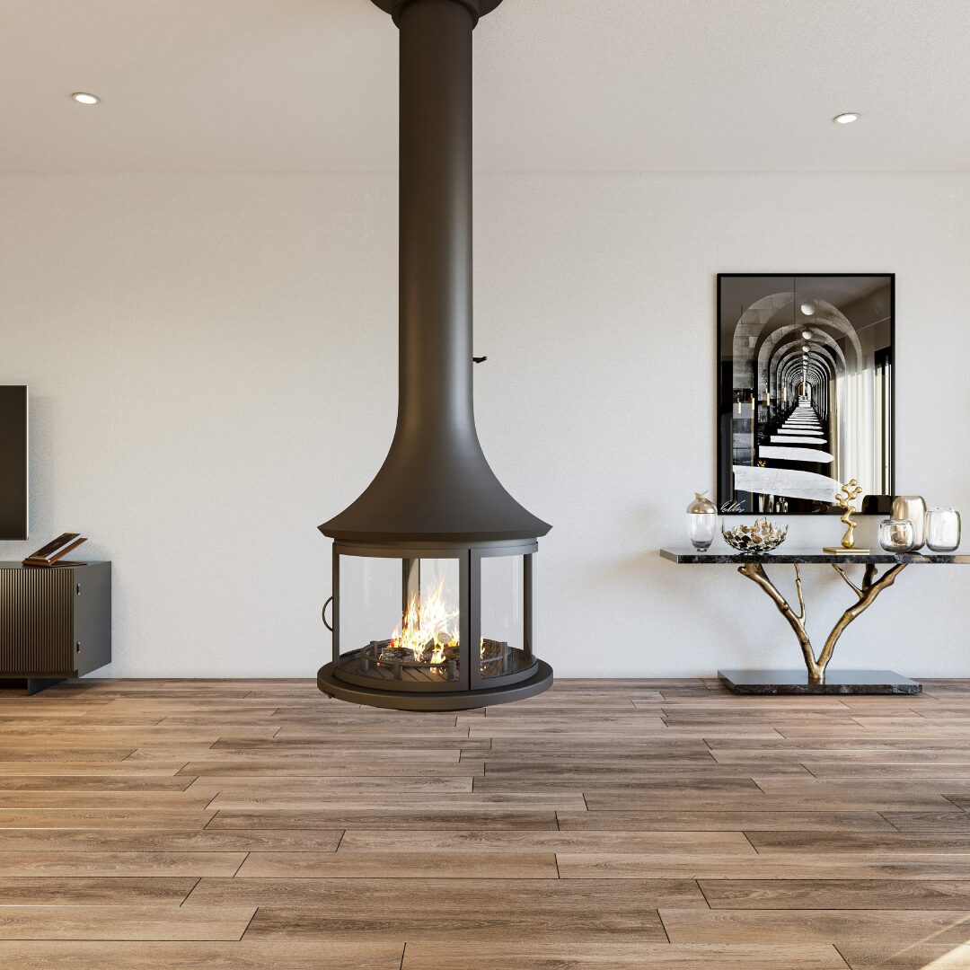 The JC Bordelet Lea 998 is a compact suspended fireplace that delivers 360-degree flame views, perfect for contemporary interiors where space is at a premium. Its sculptural form creates a striking focal point in any room.