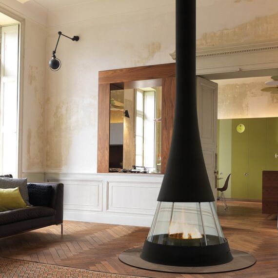 The JC Bordelet Linea 914 is a compact suspended fireplace that delivers 360-degree flame views, perfect for contemporary interiors where space is at a premium. Its sculptural form creates a striking focal point in any room.