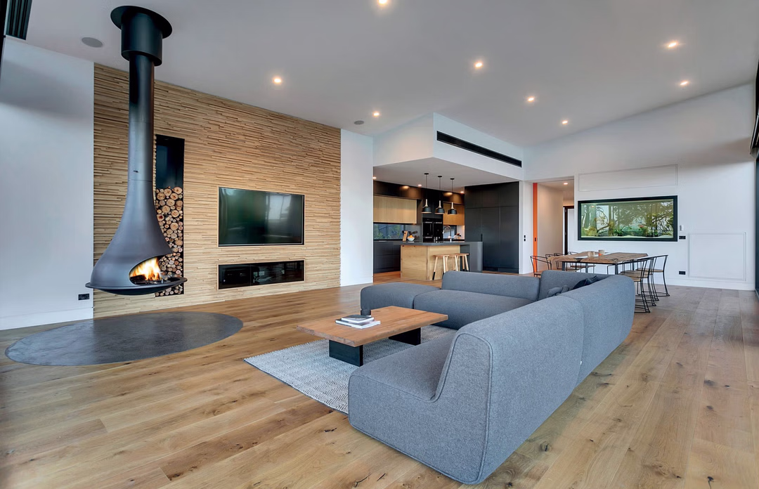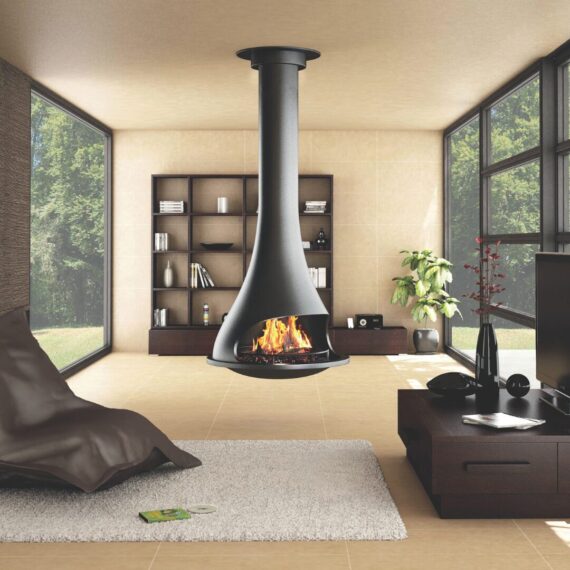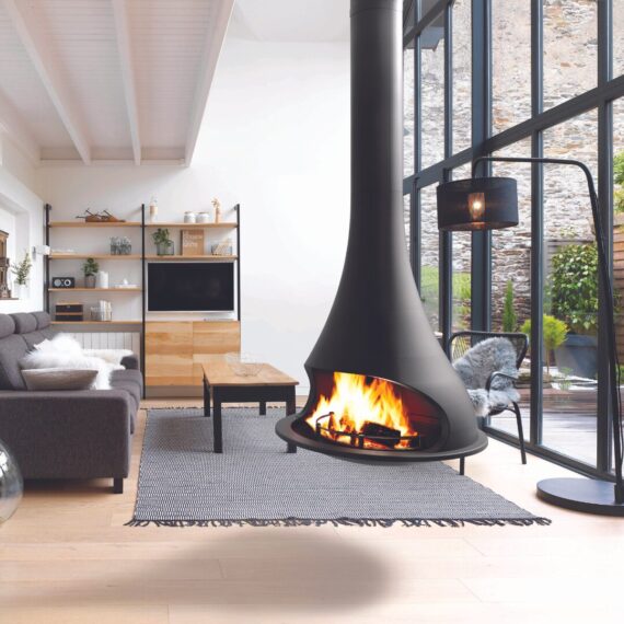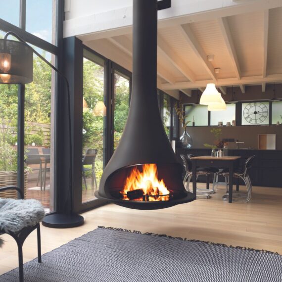 The JC Bordelet Tatiana 997 offers a bold 180-degree viewing experience, creating a dramatic suspended centrepiece in any contemporary living space. Its fixed design ensures uninterrupted views of the flames, adding warmth and visual impact to the room.